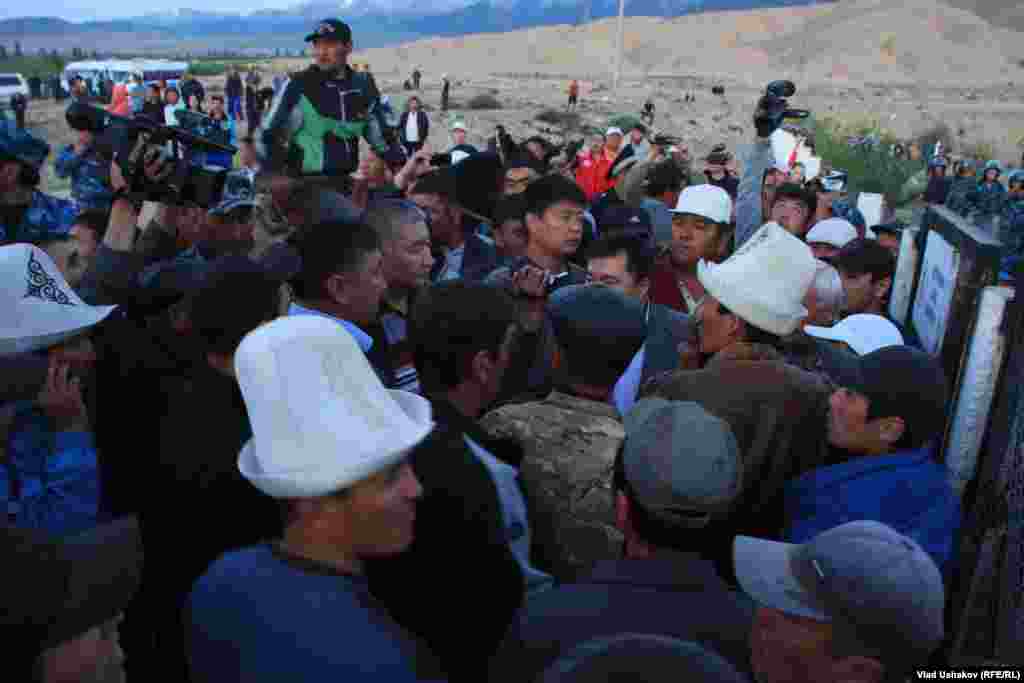 Кумтөр ишканасына каршы акция 27-майда башталган. Үч күн Барскоон - Кумтөр унаа жолун тороп турган миңдей киши кечээ Тамга айылына түшүп, Кумтөрдүн подстанциясын өчүрүп салган. Бул ишке тиешеси бар деген жүздөй кишини милиция таңдан бери подстанциянын аймагынан чыгарбай кармап турат. Сүрөттөр Влад Ушаковдуку