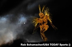 Андан соң голливуд жылдызы Том Курз "Станд де Франс" стадионунун үстүнөн түшүп, олимпиаданын желегин стадиондон түз эле Лос-Анжелеске алып кетти.
