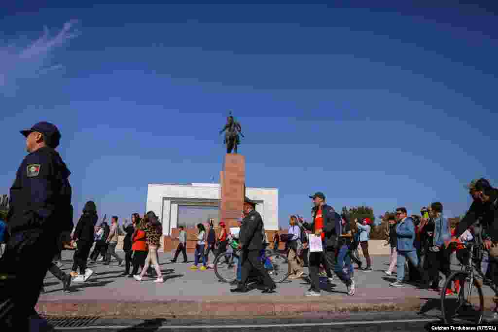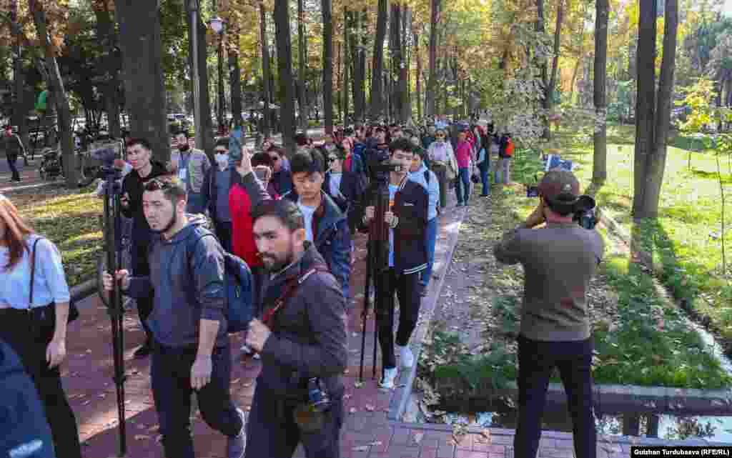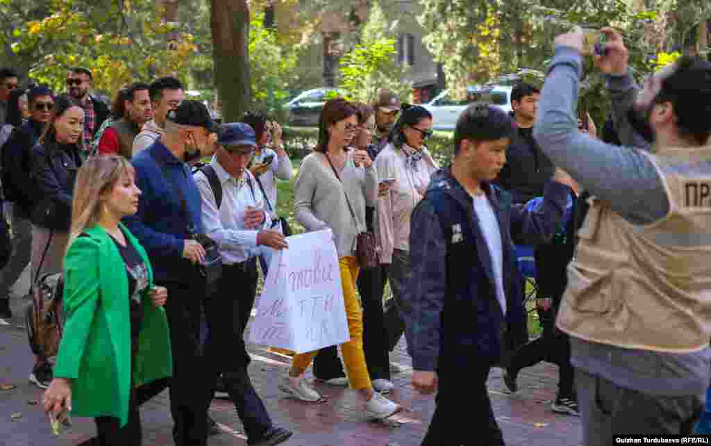 Жүрүшкө чыккандар адегенде темир жол вокзалында чогулуп, анан борбордук аянтты көздөй басышты. 13-октябрда Бишкекте “Азаттык Медианын” кеңсесинин алдында “Азаттык”, “Клооп”, “Кактус Медиа” жалпыга маалымдоо каражаттарынын (ЖМК) жабылышын талап кылгандар акцияга чыккан. Алар радионун кеңсесин өрттөп кетерин айтышкан.