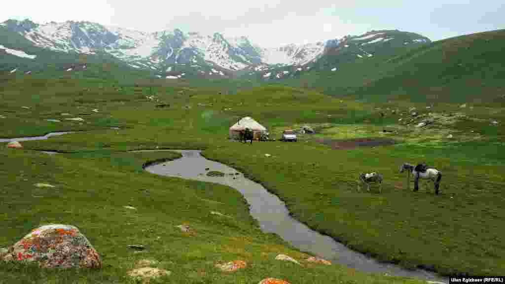Бул жерден бир эле күндө жылдын төрт мезгилин көрүүгө болот. Быйыл өзгөчө жаан-чачын көп болгондуктан чөп эми гана көтөрүлдү. 35 жылдан бери мал багып келаткан Ырысбек Элтуйбасовдун үй-бүлөсү быйыл да жайлоого чыкты. Алар 700дөн ашык кой, төрт үйүр жылкы жана 50дөн ашык уй багышат.